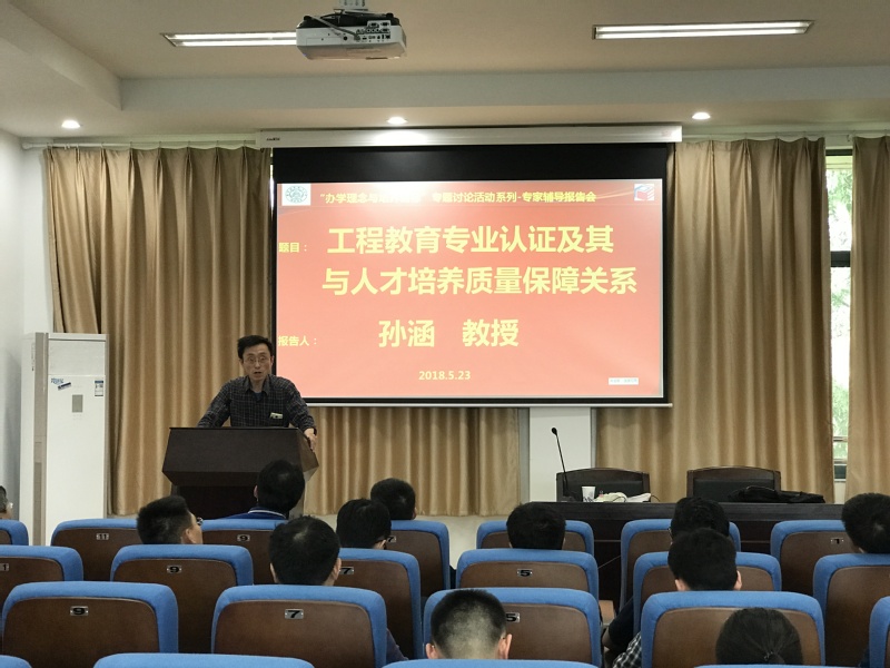 2018 年5月24日下午,英国正版365首页举办的“办学理念与培养目标”专题活动-工程教育专业认证专家辅导报告会在10号楼619报告厅进行,会议邀请了中国工程教育专业认证专家、我校计算机科学与技术学院副院长孙涵做“面向复杂工程问题专业建设与课程改革探索与实践”专题报告。会议由副院长张天宏教授主持,全院包含专业负责人、系主任、骨干教师、教学管理人员等在内的50余名教师参加了本次会议。