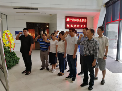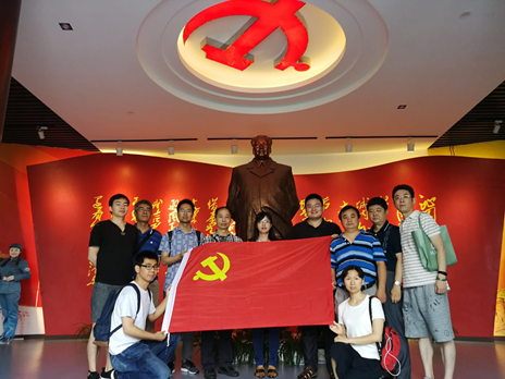 最后,在支部书记张宏建老师的带领下,在纪念馆宣誓厅,面对党旗重温了入党誓词。