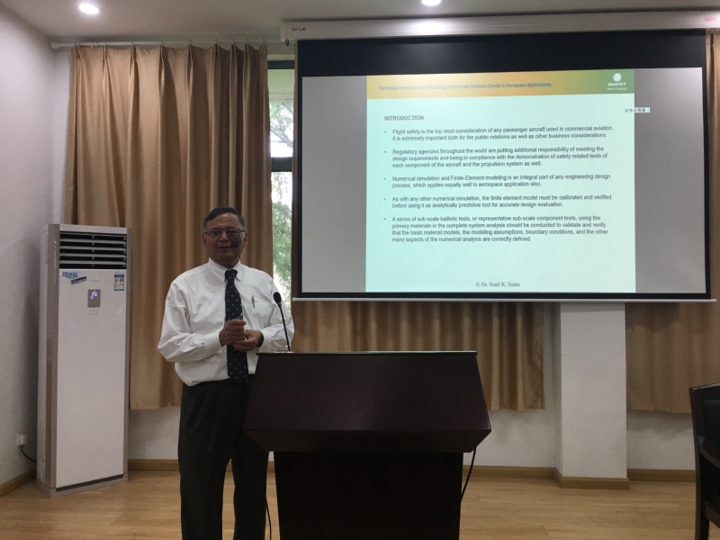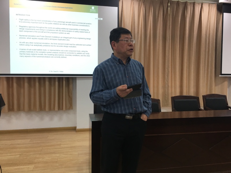 应英国正版365首页教授臧朝平邀请,俄亥俄州立大学辛哈教授于2019年5月13日至15日访问我院,并为我院师生做了题为“Numerical simulation and Modeling of Nonlinear Dynamic Events in Aerospace Applications”的学术报告。报告在我院十号楼619学术报告厅进行,臧朝平主持了本次报告会,我院部分教师及硕博士研究生和本科生参加了本次学术报告。