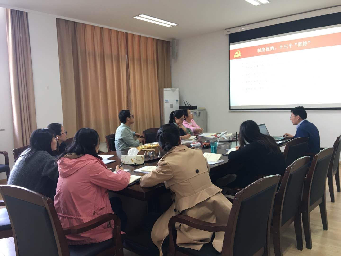 首先,支部集体学习了10月28日至31日召开的中国共产党第十九届中央委员会第四次全体会议精神,包括“十三个坚持”的制度优势、未来的部署等内容,着重学习了一个总体目标以及十三个“坚持和完善”。