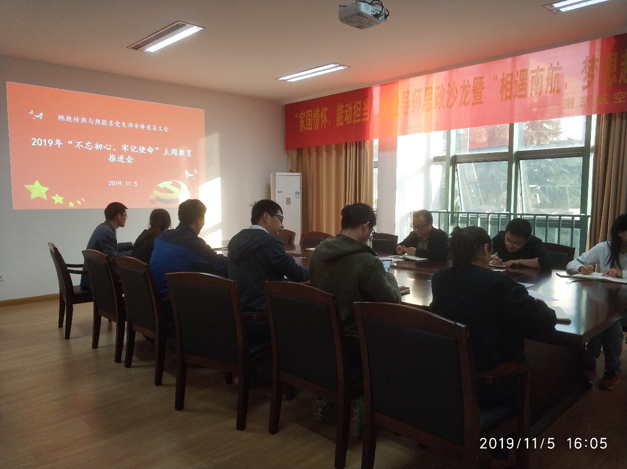 2019年11月5日,英国正版365首页燃烧传热与热能系党支部在10号楼400会议室召开了党员大会暨“不忘初心,牢记使命”主题教育推进会。此次支部会议由颜应文书记主持,支部全体党员同志参加学习。