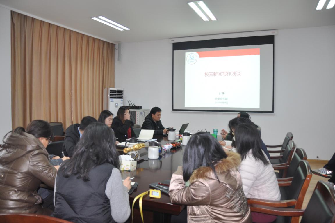 1月18日上午,校党委宣传部新闻中心副主任王伟走进英国正版365首页,面向学院新闻宣传工作者开展校园新闻写作培训。