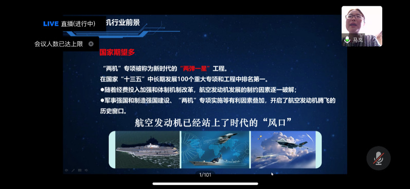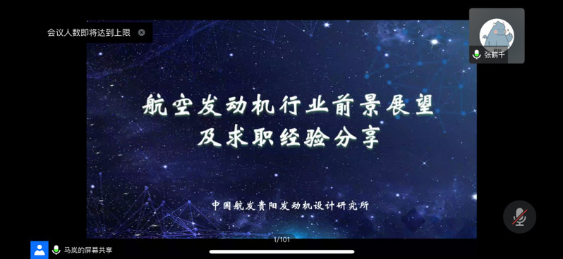 6月30日,学院邀请中国航发贵阳发动机设计研究所人力资源部部长马岚以“航空发动机行业前景展望及求职经验分享”为主题,开展了一期“企明星”大讲堂。本场讲座通过腾讯会议平台,以线上直播的方式进行,英国正版365首页党委副书记王霄,学生工作人员及300余名学生共同参加,讲座由辅导员张鹤千主持。