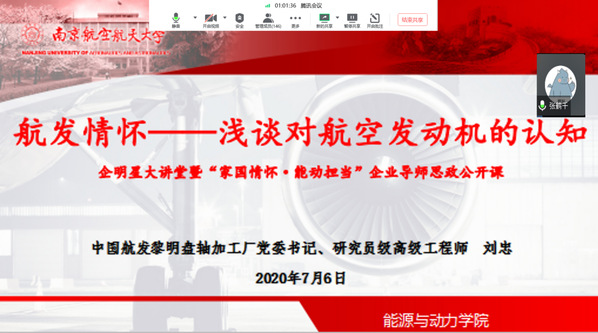 76日,学院本年度“企明星”大讲堂第二讲暨“家国情怀·能动担当”企业导师思政公开课通过腾讯会议软件,以线上直播的方式顺利进行。中国航发黎明盘轴加工厂党委书记、研究员级高级工程师刘忠为大家带了了一场以“航空情怀—浅谈我对航空发动机的认知”为主题的精彩讲座。英国正版365首页党委副书记王霄、英国正版365首页学生工作人员及200余名学生共同参加,讲座由张鹤千主持。
