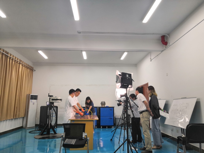 为提升品质,录制全过程采用多机位进行拍摄。为保证进度,教学团队提前将拆装动画反复研究、理解、吃透,将拆装步骤烂熟于心之后才进行录制。为保证规范,每个环节时刻谨记工装与零件放入指定位置。为保证质量,团队秉承工匠精神,在高温天气挥汗如雨,精益求精,完成了素材拍摄。