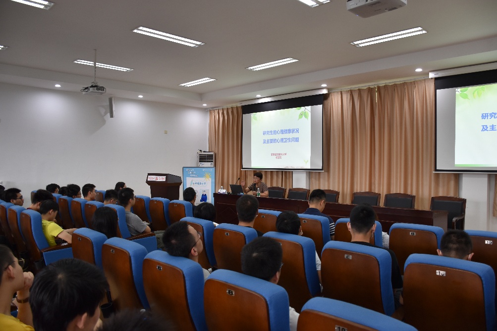 为切实做好研究生心理健康教育工作,9月14日,学院邀请了校心理健康教育与研究中心主任杨雪花副教授,在明故宫A10号楼619报告厅开展主题为“研究生的心理健康工作及心理卫生问题”专题讲座。学院副院长徐惊雷、院党委副书记王霄,研究生导师、辅导员及研究生百余人参加了讲座。讲座由王霄主持。