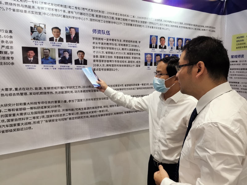 会议期间同时举办了第五届空天推进技术展会(以下简称展会)、2020中国空天动力创新创业大赛(以下简称大赛)等活动。学院院长毛军逵陪同校长单忠德参观了我院以及航天三院31所等单位的展台,并进行了充分的了解和深度的交流。