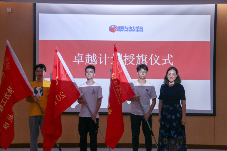 典礼最后,王霄分别为飞行器动力工程卓越班、0219203及0219303三个卓越工程师班授旗。