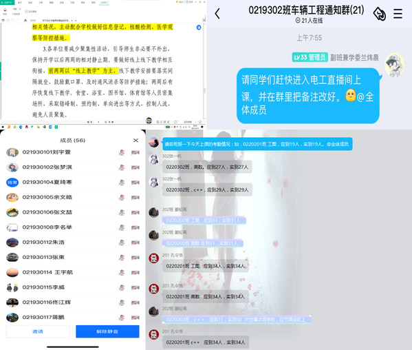 根据学校疫情防控工作统一安排,前两周均采取“线上教学”模式。为进一步加强学风建设,做好“线上教学”的过程检查和质量保障,学院上下共同关注“云”课堂准备情况与上课效果,及时解决相关问题、做好相关反馈。