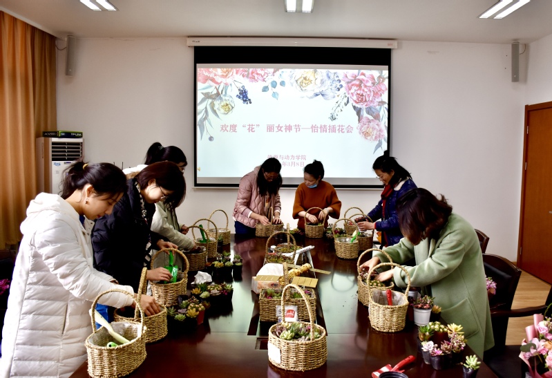 本次活动分为两个部分。学院工会组织的插花、种植“多肉”小盆栽活动环节,花艺老师结合当日准备的花材为大家讲授了花艺、养护的基本知识,在专业指导下,女老师们纷纷动手设计自己的花艺作品,挑选花材,搭配花束和多肉盆栽。活动中,30余个特色各异的花篮、精彩纷呈的花束在老师们的巧手中诞生。