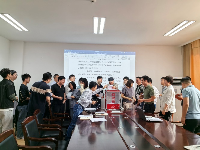 贺振宗宣读了党支部换届相关细则草案,经参会全体支部党员一致讨论通过。此次支部换届大会通过无记名投票方式,选举产生了新一届支部委员。随后,新一届支委召开了第一届支委会议,讨论并选举了杨理理同志为支部书记,金武同志为支部副书记,贺振宗同志为支部宣传委员,孙文静同志为支部组织委员,王龙飞同志为支部纪检委员。
