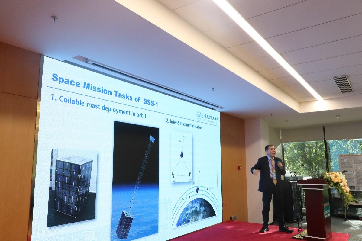 北京航空航天大学黄海教授进行了题为《Micro-satellite SSS-1 & Its Tests in Orbit》的演讲报告,介绍了微型卫星SSS-1中使用的新技术,并向与会人员展示了开发中的一些典型测试程序以及重要的卫星太空操作和测试情况等。