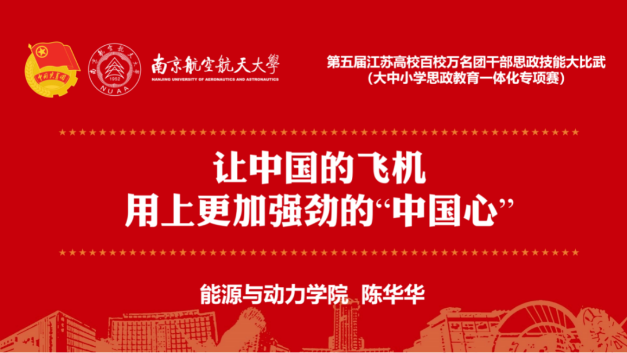 本次大赛是全省共青团系统内的高水平赛事,旨在深入学习贯彻习近平新时代中国特色社会主义思想,全面推动思政工作守正创新,提升团干部的政治素养与育人能力。比赛中,陈华华以《让中国的飞机用上更加强劲的“中国心”》为题,呈现了一堂精彩纷呈的微团课。她以航空发动机——“现代工业皇冠上的明珠”的研制历程为主线,深情讲述了一代代航空人从零起步、攻坚克难,最终实现关键核心技术突破的感人故事,生动诠释了“择一事、终一生”的工匠精神与深沉的家国情怀。课程巧妙融合专业特色与思政教育内涵,运用“青言青语”贴近青年思维,有效激发了广大学子的使命担当与报国热情。