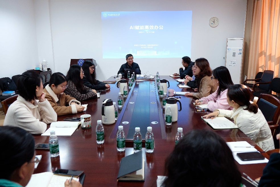 为积极顺应人工智能发展浪潮,提升机关工作人员智能办公素养与实操能力,11月21日上午,学院在明故宫校区举办“能动精研工坊”第三讲培训,特邀学校信息化处总工程师何安元作《AI赋能高效办公》专题授课。学院机关全体人员、教工支部支委代表参加培训。培训由学院党委书记许静主持。