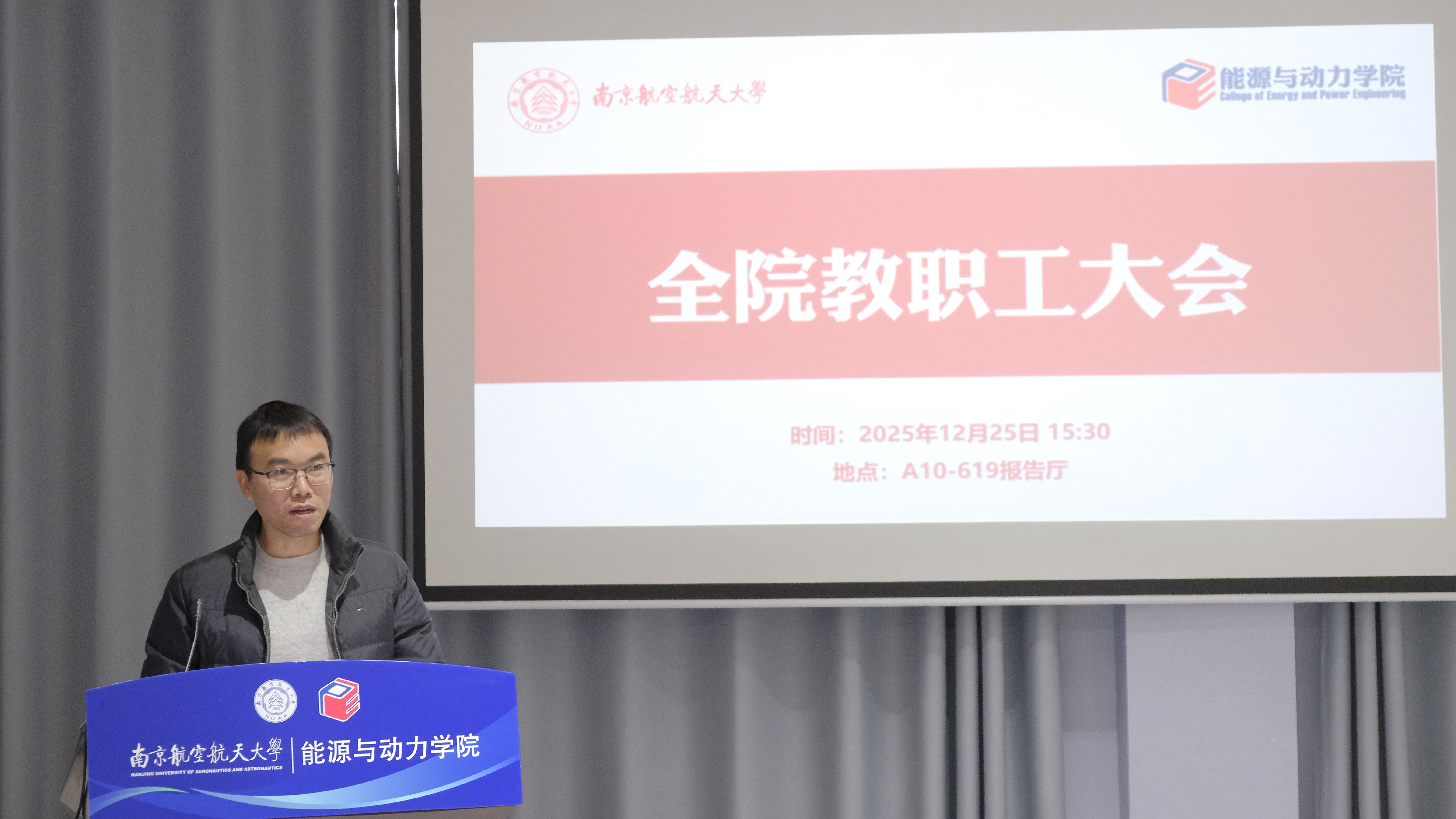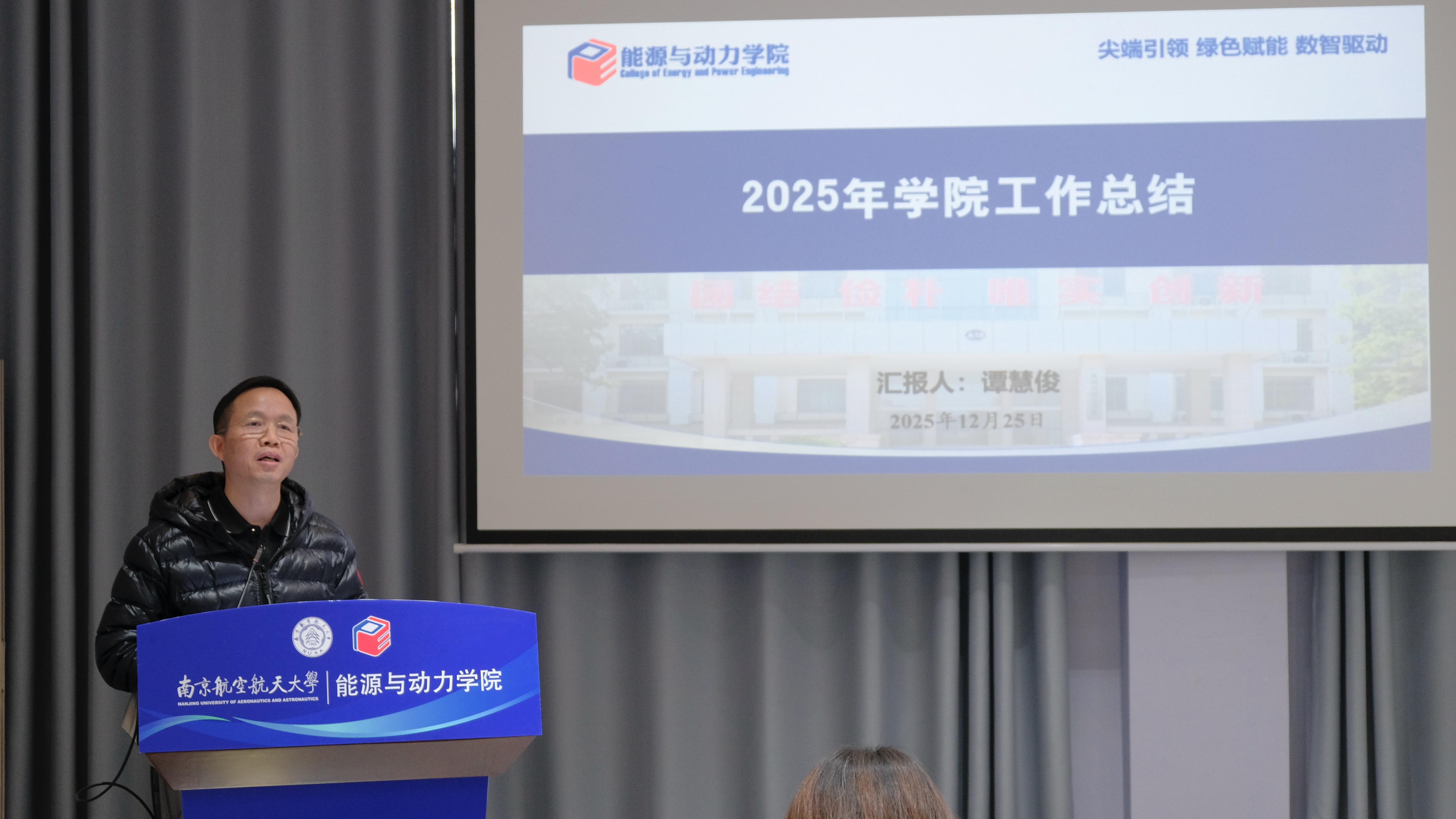谭慧俊代表学院行政班子作2025年度学院工作总结报告。他指出,学院紧紧围绕“尖端引领、绿色赋能、数智驱动”发展战略,在学科建设、人事人才、教育教学、科学研究、实验室管理、国际合作等方面取得了一系列成果。谭慧俊系统分析了学院当前面临的机遇与挑战,并对下一年度重点工作的推进思路与目标任务作出部署。他强调,要凝聚全院智慧与力量,以系统思维统筹发展与安全,以务实作风狠抓执行落实,进一步强化使命驱动、目标导向,紧密对接国家重大战略需求与行业发展前沿,持续深化有组织科研与协同育人机制,推动学科交叉融合与创新平台能级提升。