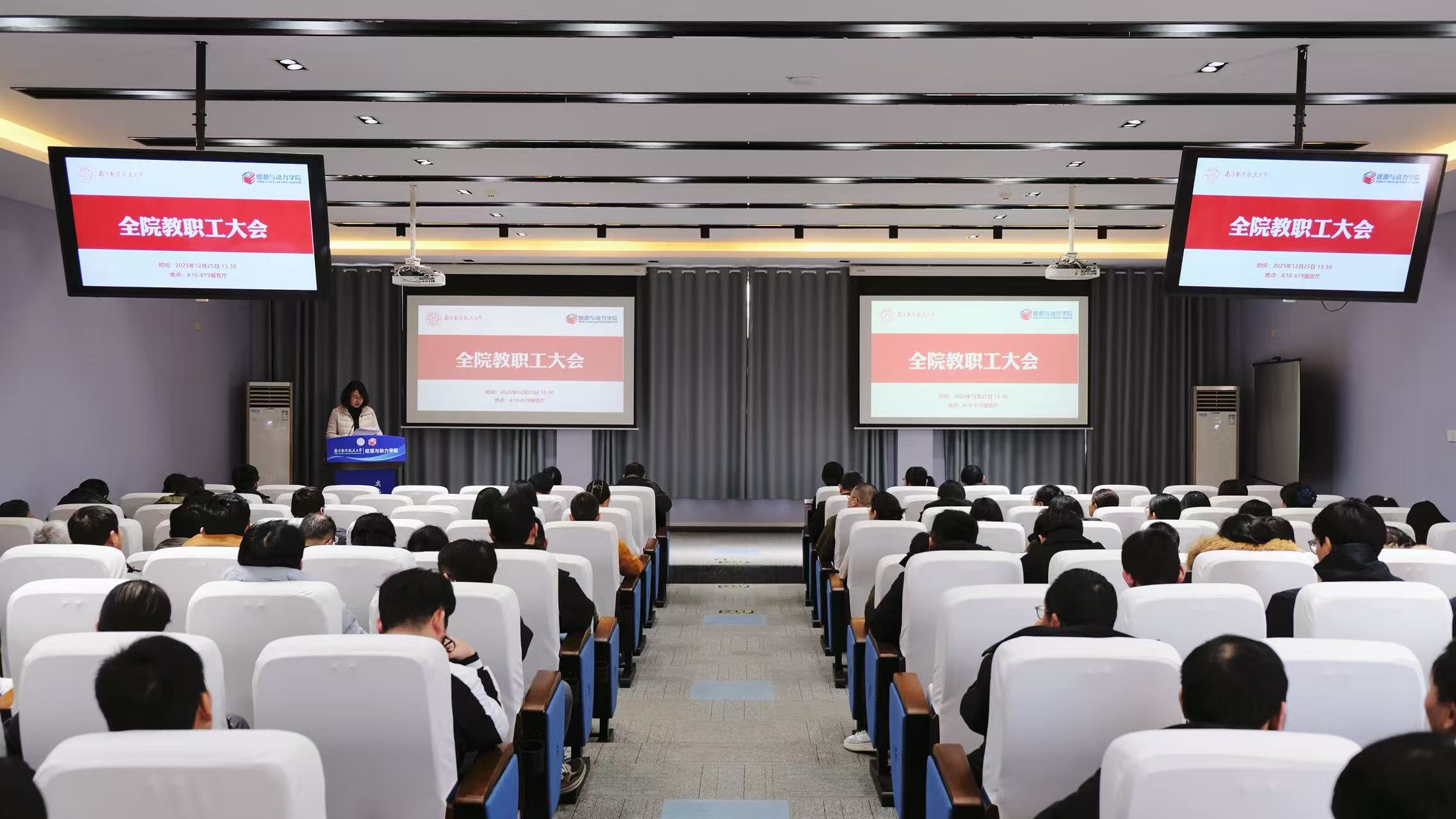 12月25日下午,学院在明故宫校区十号楼报告厅召开2025年度全体教职工大会暨领导班子述职述廉会,学院党政领导班子及全体教职工参加大会。会议由院党委书记许静主持。