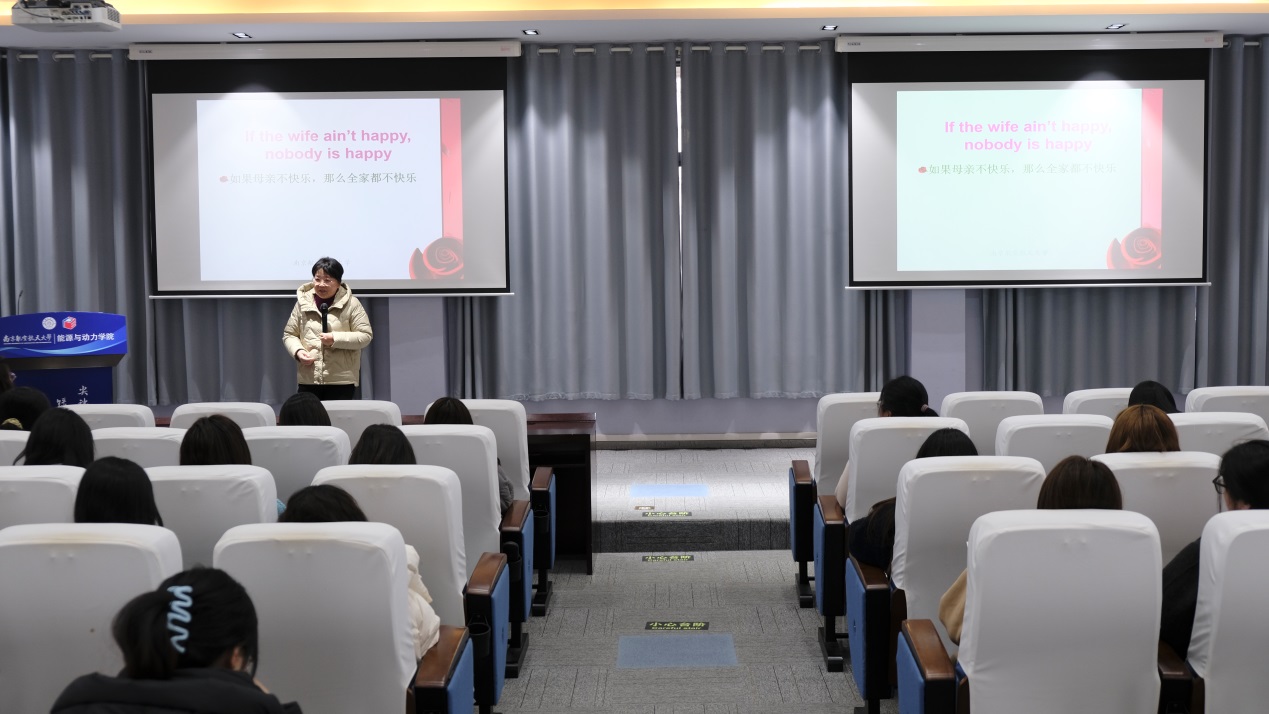 讲座伊始,许静代表学院对杨雪花的到来表示热烈欢迎,并向在场全体女同胞致以节日的诚挚问候与美好祝愿。她表示,学院始终关心关爱女教职工和女学生的成长与发展,希望通过此次讲座,帮助大家更好地关注内心世界,提升幸福感。